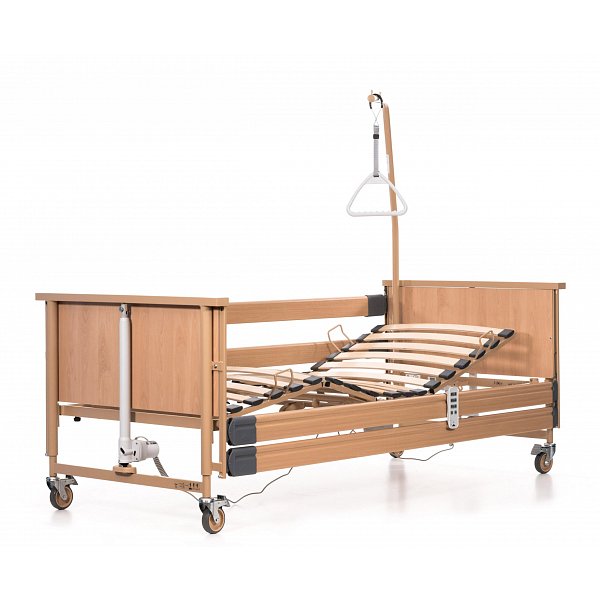 Nový model zdravotnej polohovacej postele nemeckého výrobcu Burmeier vyniká svojou kvalitou spracovania, dlhou životnosťou, ekonomickým 24 voltovým systémom pohonu znižujúcim spotrebu elektrickej energie až o 92%. Ďalej je polohovacie lôžko vybavené novým bezdrôtovým ovládačom. Zdravotná posteľ má maximálnu výbavu polohovania, kde je možné polohovať celkovú výšku postele, chrbtovú časť, nožnú časť, bedrovú časť a celkový náklon - naklonenú rovinu. Drevené bočnice lôžka je možné spúšťať, tým sa zaistí pohodlný prístup na lôžko. Najpredávanejší model zdravotnej postele vďaka pomeru cena/výkon. Odporúčame pre domácu a sociálnu starostlivosť.