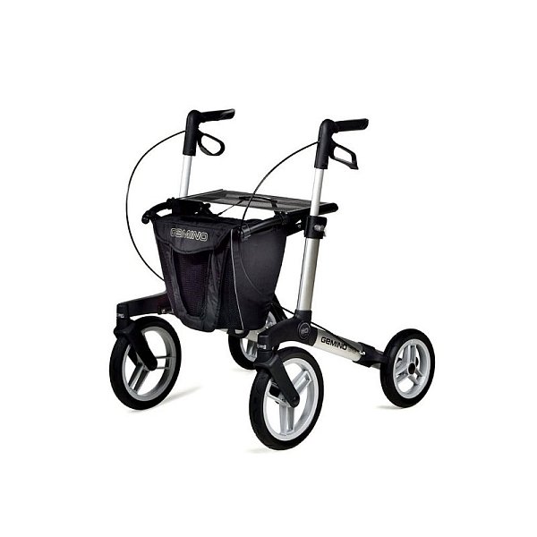 Gemino 60 je perfektný spoločník pre váš aktívny životný štýl – ľahký, ale pritom kvalitný. Vďaka veľkým, mäkkým kolesám a extra pevnému rámu vám toto vonkajšie chodítko umožňuje pohodlnú a bezpečnú chôdzu. Prehliadka dláždenými uličkami starého mesta, prechádzka lesom alebo len prekonávanie prekážok u vás doma? S Gemino 60 to bude všetko oveľa jednoduchšie. Vďaka vynikajúcemu, ultraľahkému ergonomicky navrhnutému brzdeniu, zistíte, že ovládanie brzdových rukovätí vyžaduje veľmi málo úsilia. Chytrý dizajn brzdy je šetrný ku kolesám a zaisťuje optimálnu priľnavosť. Na odpočinok je k dispozícii priestranné sedadlo. Terénne štvorkolesové chodítko Gemino 60 prichádza s celým radom atraktívnych doplnkov - štýlovou taškou, pohodlnou chrbtovou opierkou alebo svetlom pre väčšiu bezpečnosť. Gemino je právom ocenené chodítko, je to„to najlepšie z najlepších“. Má ľahký dizajn, inovatívnu funkčnosť, moderný štýl a vysoko kvalitné materiály pre jednoduché a bezpečné použitie, ktoré pomáha zlepšiť kvalitu vášho života!